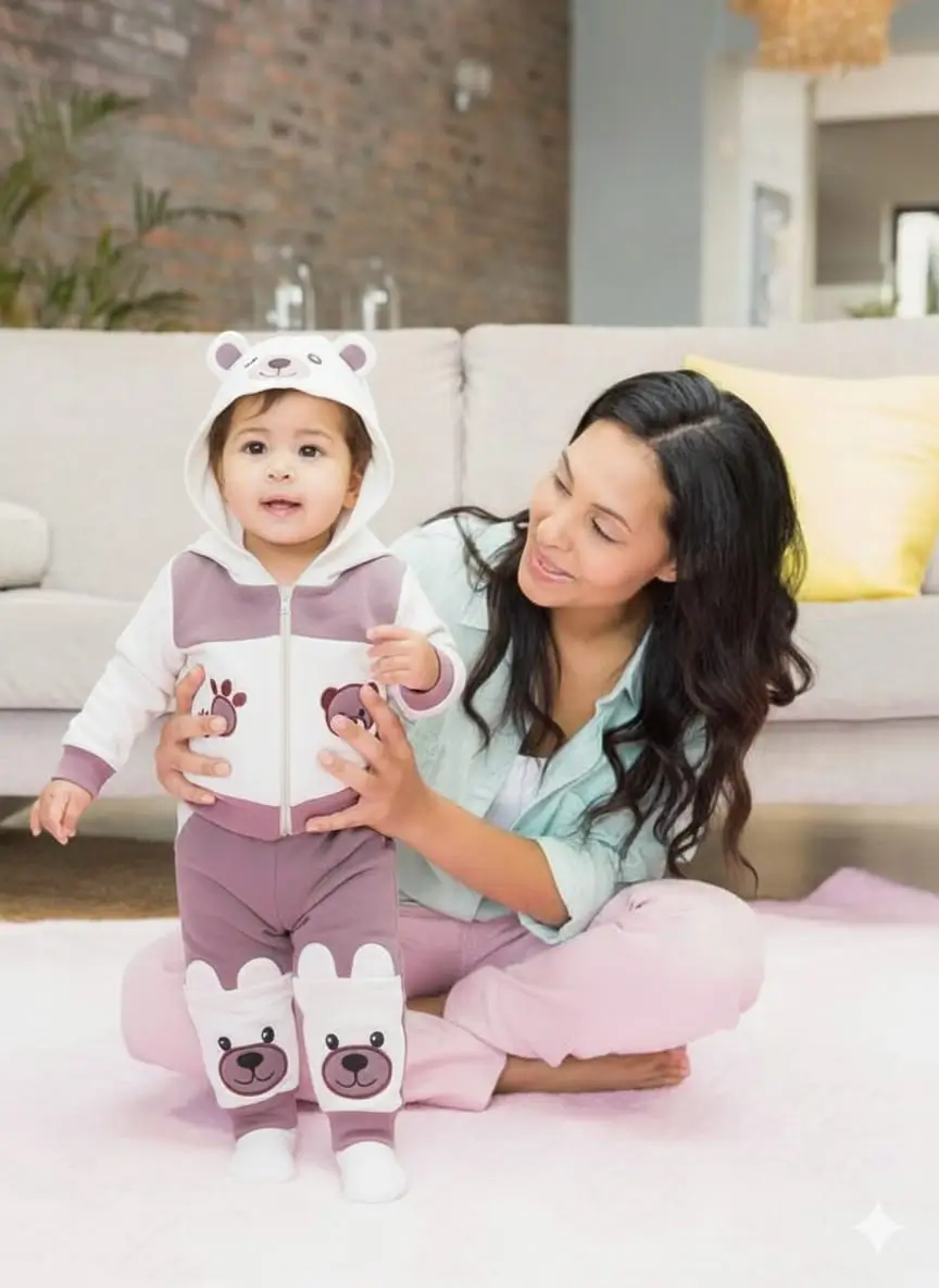 Get your little explorer ready for fun and cozy adventures with the Little Bear Adventure Suit! This adorable two-piece set includes a zip-up hoodie with cute bear ears and matching pants featuring playful bear face knee patches. Made from ultra-soft and warm fabric, it’s perfect for keeping your baby snug during cool days. The comfy fit and gentle material make it ideal for both indoor play and outdoor strolls — a must-have outfit for every tiny adventurer!